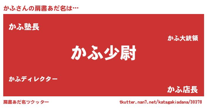 | 男性向けラノベタイトル風あだ名 | 『転生したらかふだった件』『かふの憂鬱』 |