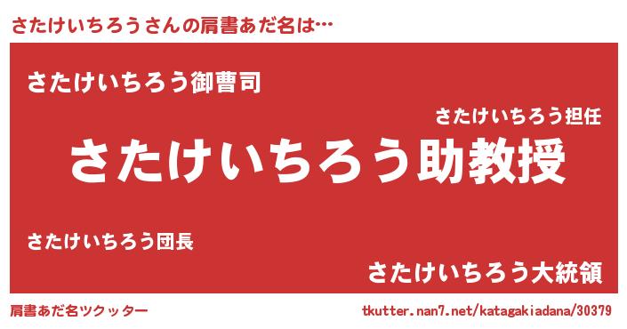 | 男性向けラノベタイトル風あだ名 | 『ノーゲーム・ノーサタケイチロウ』 |