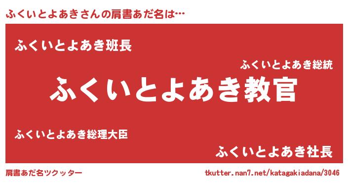 | 意味不明あだ名 | 『住所不定無職ふくいとよあき(74歳)』 |