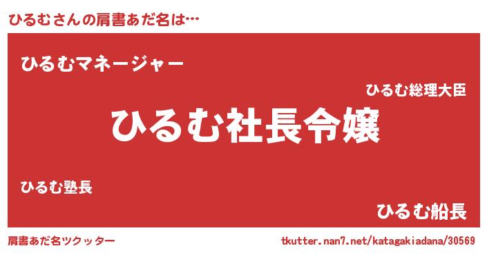 | 男性向けラノベタイトル風あだ名 | 『ひるむの憂鬱』『はたらくひるむさま!』 |