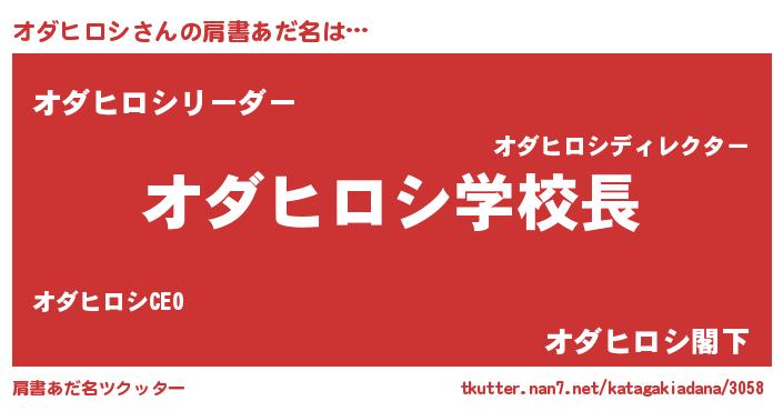 | ヒーロー風カッコイイあだ名 | 『天空の使者オダヒロシ』『天弓騎士オダ』 |
