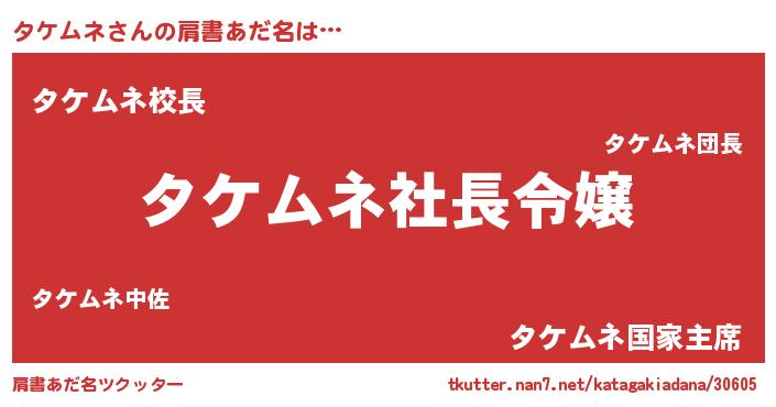 | ヘコむあだ名 | 『タケもー』『タケムネ(笑)』 |