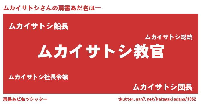 | 男性向けラノベタイトル風あだ名 | 『この素晴らしい世界にムカイサトシを!』 |