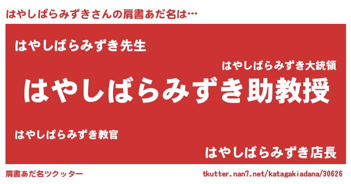 | ヘコむあだ名 | 『はやしばらみずき(笑)』『はやにー』 |