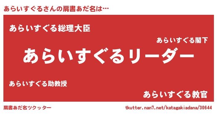 | ヒーロー風カッコイイあだ名 | 『暗黒騎士アラ』『仮面アラダー』 |