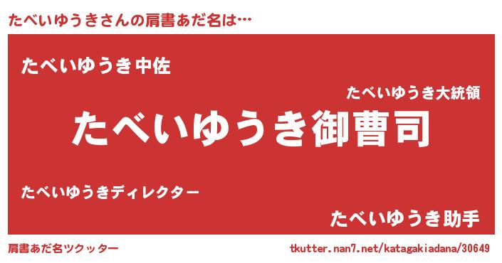 | 男性向けラノベタイトル風あだ名 | 『たべいゆうきの憂鬱』 |