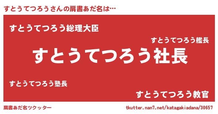 | ヒーロー風カッコイイあだ名 | 『スーパーストウテツロウ』 |