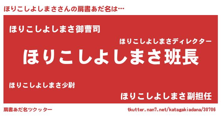 | 女子向けラノベタイトル風あだ名 | 『ほりこしよしまさの卵を拾いまして』 |