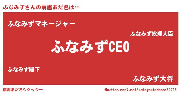 | ヘコむあだ名 | 『ふなふぇ~』『つくし』『ふなを』 |