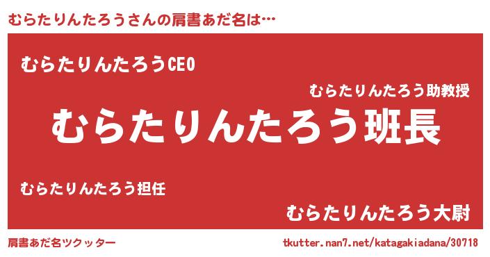 | 男性向けラノベタイトル風あだ名 | 『ダンジョンにむらたりんたろうを求めるのは間違っているだろうか』 |