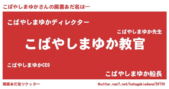 | 男性向けラノベタイトル風あだ名 | 『この素晴らしい世界にこばやしまゆかを!』 |