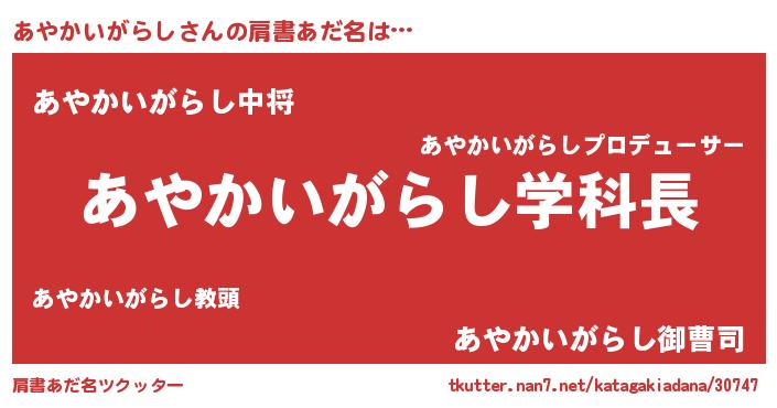 | ヘコむあだ名 | 『あやっふぃ~』『あやかいがらし(震え声)』 |