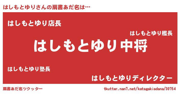 | 女子向けラノベタイトル風あだ名 | 『はしもとゆりの玉の輿計画!』 |