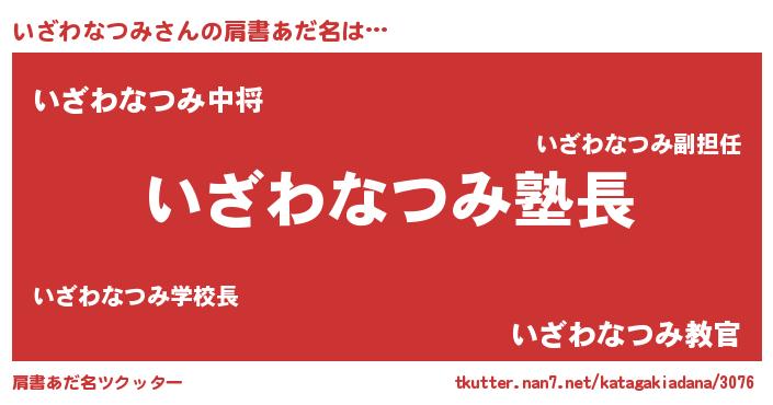| 意味不明あだ名 | 『とにかく怪しいいざわなつみ』 |