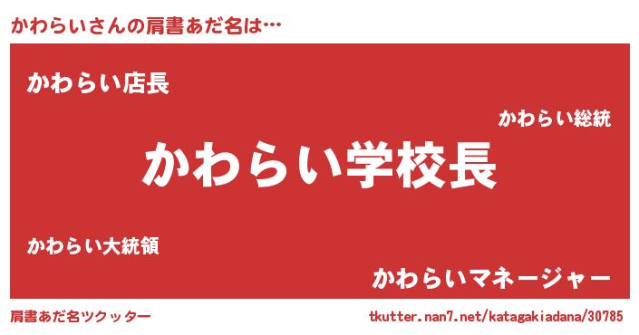 | ヒーロー風カッコイイあだ名 | 『慈愛の使者かわらい』『仮面カワダー』 |