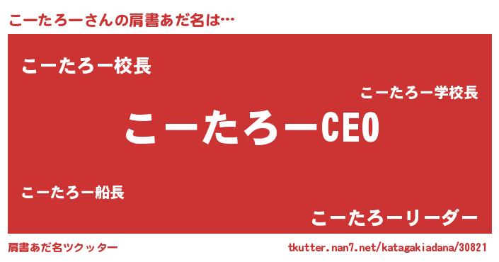 | ヒーロー風カッコイイあだ名 | 『スーパーコータロー』『ネオコータロー』 |