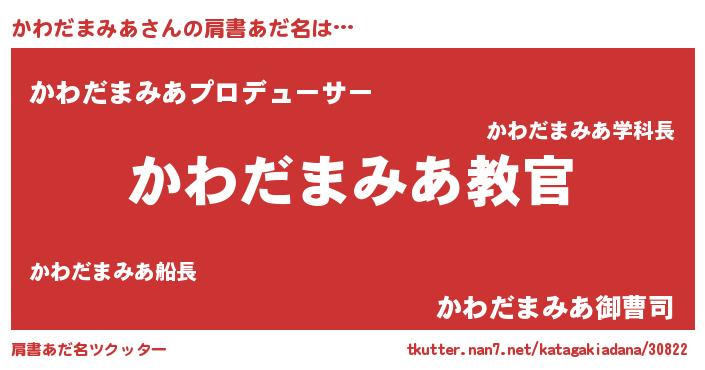 | 恥ずかしいあだ名 | 『プリティーかわだまみあ』『かわっちょ』 |