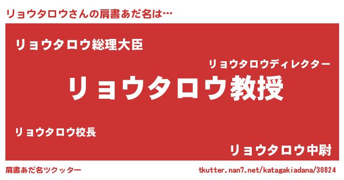| 男性向けラノベタイトル風あだ名 | 『ノーゲーム・ノーリョウタロウ』 |