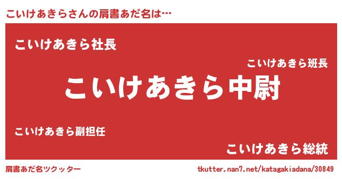| 男性向けラノベタイトル風あだ名 | 『転生したらこいけあきらだった件』 |