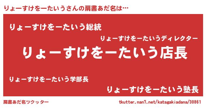 | 男性向けラノベタイトル風あだ名 | 『りょーすけをーたいうの憂鬱』 |