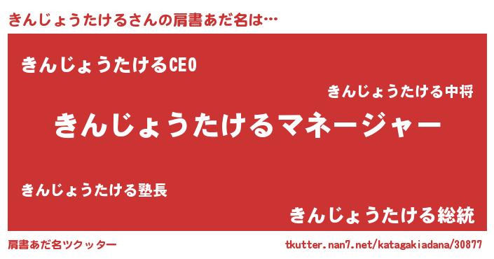 | ヒーロー風カッコイイあだ名 | 『スーパーキンジョウタケル』 |