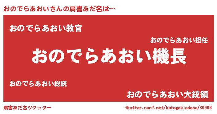 | 欧米人風あだ名 | 『おのでらあおい・ステッグマイヤー』 |