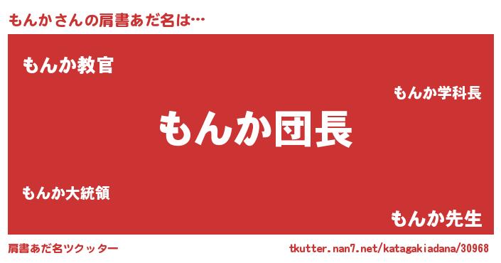 | 女子向けラノベタイトル風あだ名 | 『もんか様がみてる』『もんかの契約王妃』 |