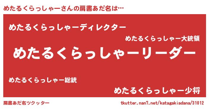 | 意味不明あだ名 | 『とにかく怪しいめたるくらっしゃー』 |