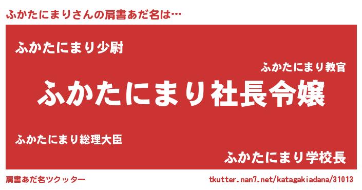 | 胡散臭い通販商品みたいなあだ名 | 『モテモテ間違いなし霊験あらたかなお札…その名も「ふかたにまり」』 |