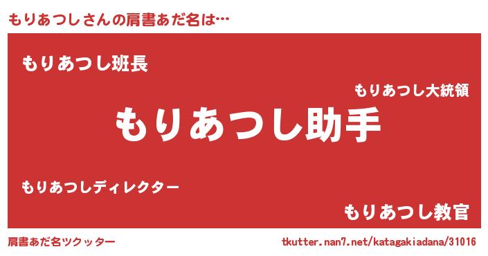 | 男性向けラノベタイトル風あだ名 | 『ノーゲーム・ノーモリアツシ』 |