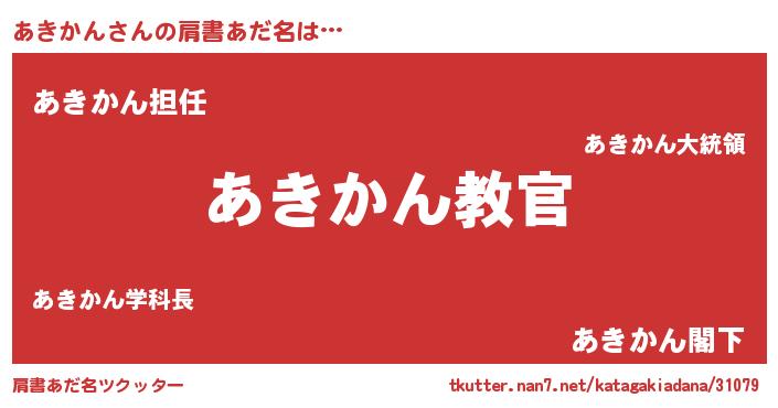 | 男性向けラノベタイトル風あだ名 | 『この素晴らしい世界にあきかんを!』 |