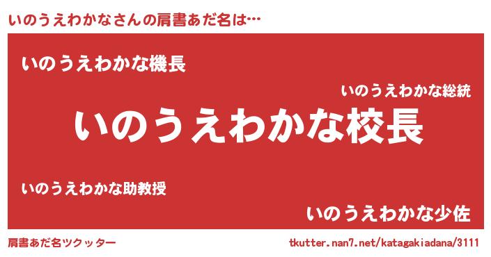 | 男性向けラノベタイトル風あだ名 | 『いのうえわかなという概念が存在しない退屈な世界 』 |
