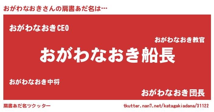| 欧米人風あだ名 | 『おがわなおき・ステッグマイヤー』 |