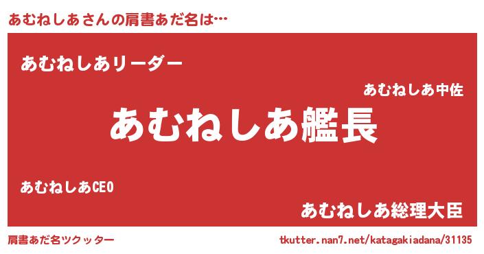 | 欧米人風あだ名 | 『あむねしあ・ステッグマイヤー』 |