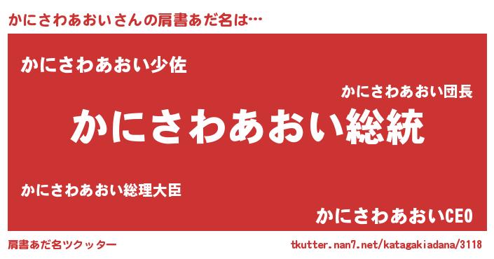 | 欧米人風あだ名 | 『ケンブリッジかにさわあおい』 |