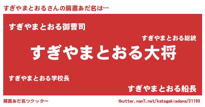 | 胡散臭い通販商品みたいなあだ名 | 『億万長者になれる霊験あらたかなお札…その名も「すぎやまとおる」』 |