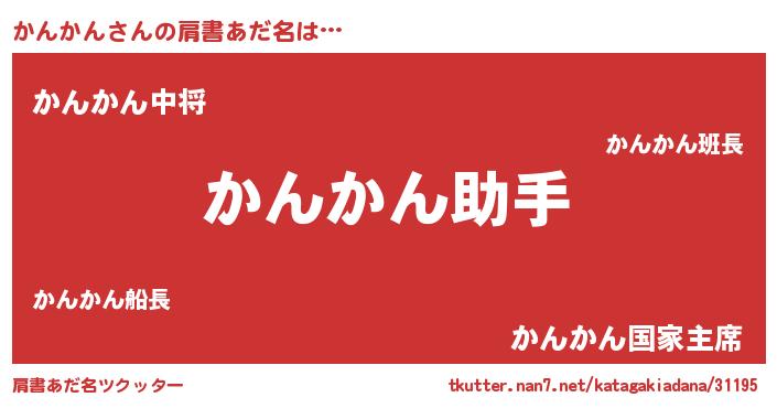 | 女子向けラノベタイトル風あだ名 | 『かんかん恋絵巻』『かんかん伯爵の花嫁』 |