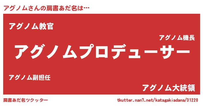 | 意味不明あだ名 | 『住所不定無職アグノム(74歳)』 |