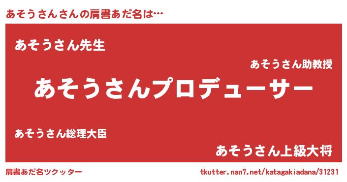 | ヘコむあだ名 | 『あそうさん(苦笑)』『なまこ酢』 |