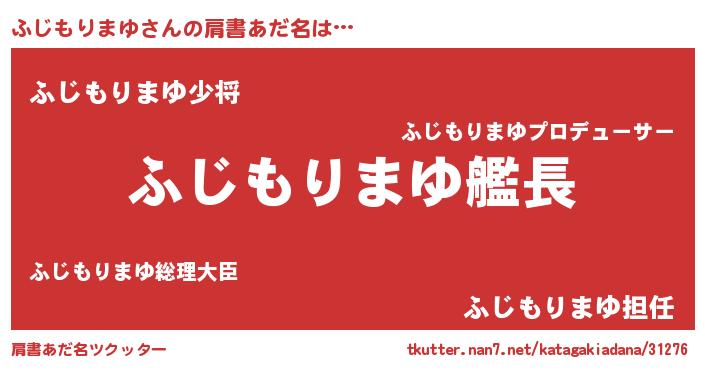 | 女子向けラノベタイトル風あだ名 | 『シンデレラふじもりまゆ家の靴箱館』 |
