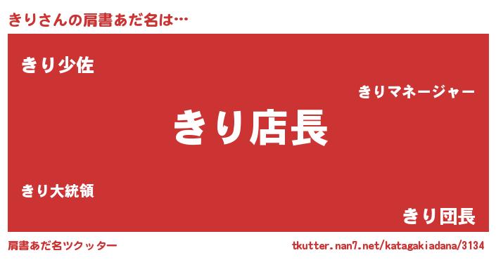 | ヘコむあだ名 | 『きりにゅー』『きりお』『豆乳』 |