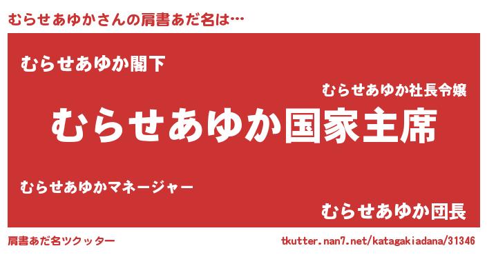 | 男性向けラノベタイトル風あだ名 | 『やはりむらせあゆかの青春ラブコメはまちがっている 』 |