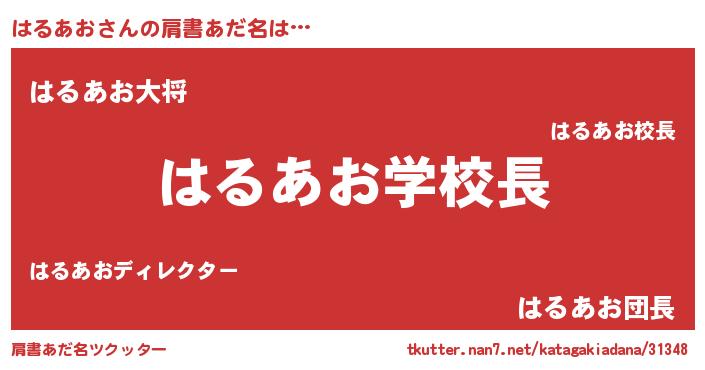 | 欧米人風あだ名 | 『ダニエルはるあお』『ウサインはるあお』 |