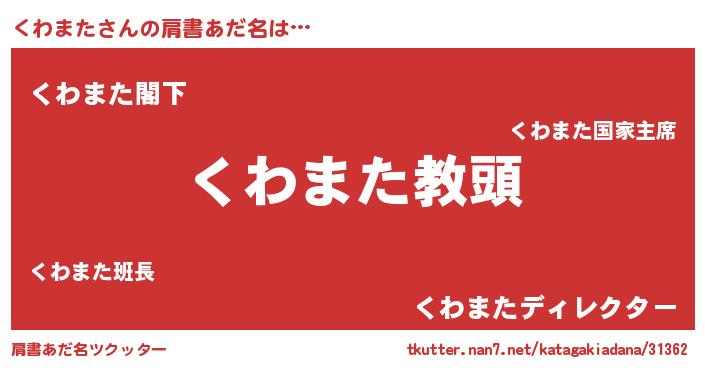 | 意味不明あだ名 | 『永久保存くわまた』『自称くわまた』 |