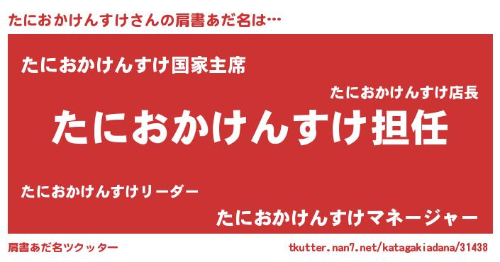 | 男性向けラノベタイトル風あだ名 | 『たにおかけんすけという概念が存在しない退屈な世界 』 |