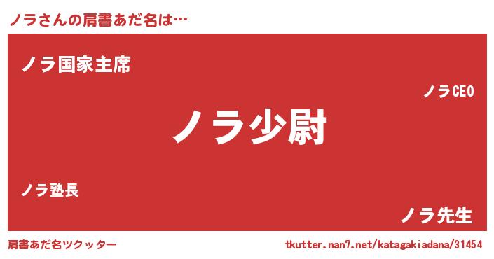 | 女子向けラノベタイトル風あだ名 | 『ノラの玉の輿計画!』『ノラ伯爵の花嫁』 |