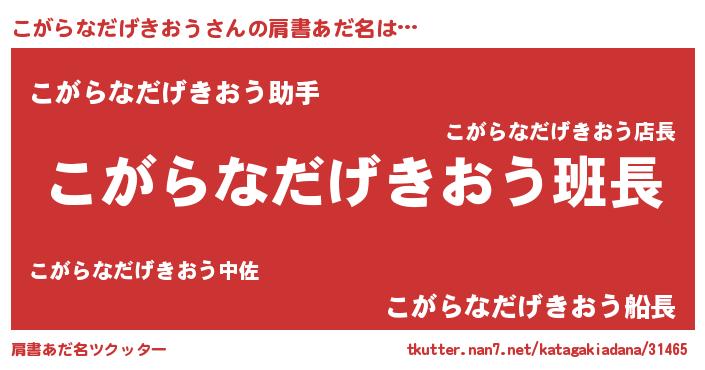 | 意味不明あだ名 | 『とにかく怪しいこがらなだげきおう』 |