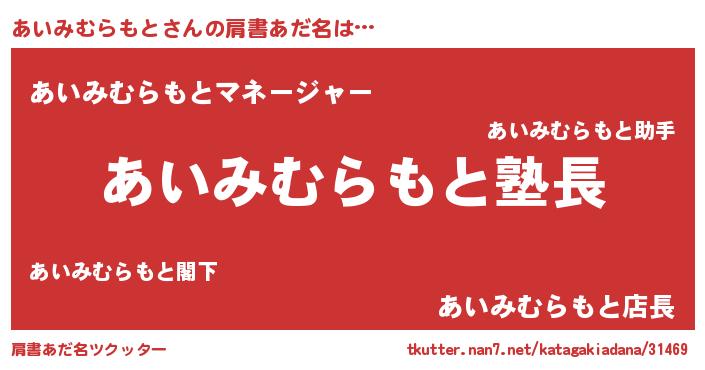| 意味不明あだ名 | 『とにかく怪しいあいみむらもと』 |