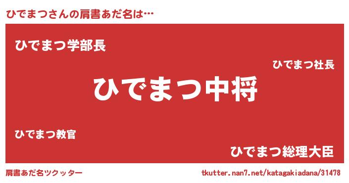 | 男性向けラノベタイトル風あだ名 | 『ヒデマツスレイヤー』『ひでまつの憂鬱』 |