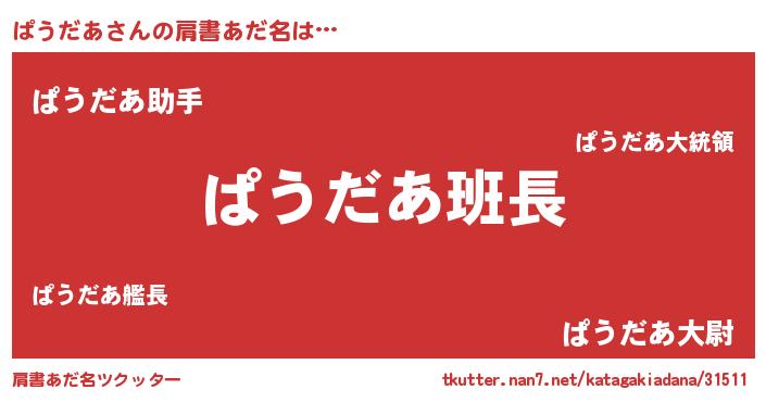 | ポケモン風あだ名 | 『ヒパウダア』『パックウザ』 |